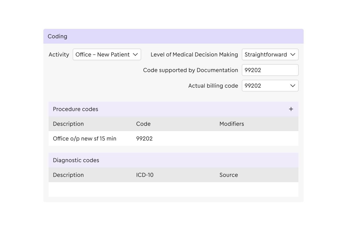 Our AI-powered ambient listening tool turns your words into suggested notes and codes, helping you complete your documentation faster.
